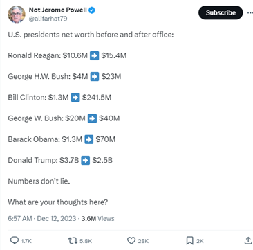 If anything, he is just creating more contempt for entertainers who get political and think they can “act” their way to winning hearts and minds. It doesn’t work that way. This is a huge reason Donald Trump’s popularity continues to rise—because he is authentic and he is fighting for all Americans. Remember, he didn’t need any of this. He could be living the billionaire lifestyle, never working another day in his life. But he loves this country and is willing to risk everything to keep America free. This is so refreshing to the American people at a time when most members of Congress start out with a decent salary but end up multi-millionaires after they’ve served for a short time. This is a uniparty phenomenon—not just the Dems. Donald Trump is the only U.S. president whose worth actually went down while he was in office.