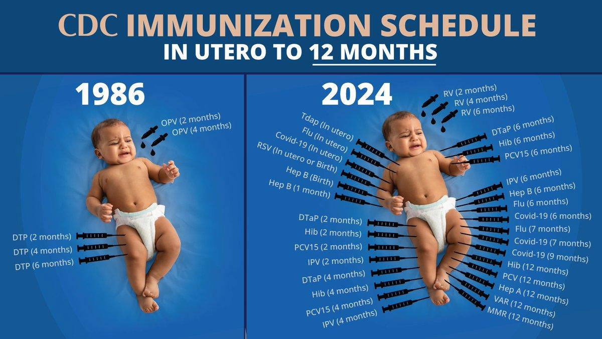 Indeed, the number of childhood vaccines has skyrocketed. In 1986 in utero to 12 months old, a child received 5 doses of vaccines. Now, that same-aged infant is recommended to receive more than 30 shots (some vaccines are broken into several doses), including Covid-19, RSV, Hep B and Flu. And a study from the “American Journal of Preventative Medicine” found that 25 percent of pediatricians had fired patients (or their parents) for refusing vaccines.