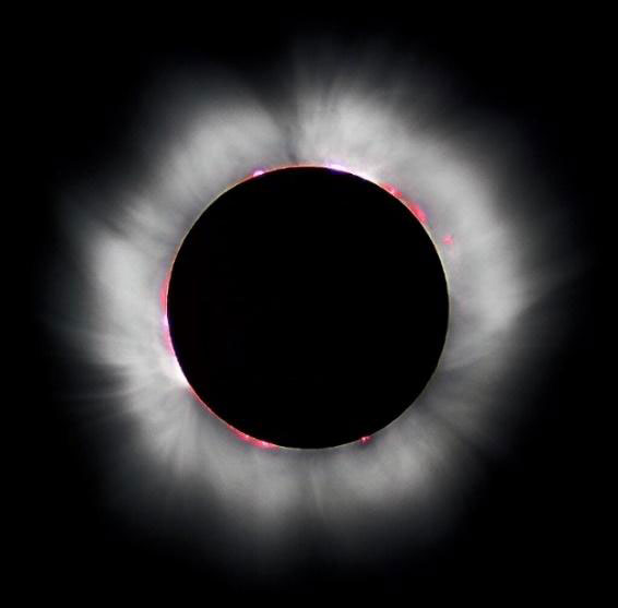 According to Wikipedia, a solar eclipse occurs when the Moon passes between Earth and the Sun, thereby obscuring the view of the Sun from a small part of the Earth, totally or partially. A total eclipse occurs on average every 18 months when the dark silhouette of the Moon completely obscures the intensely bright light of the Sun, allowing the much fainter solar corona to be visible. During any one eclipse, totality occurs at best only in a narrow track on the surface of Earth. This narrow track is called the path of totality.