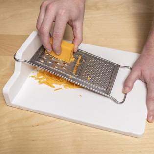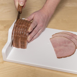 The 3rd Hand Cutting Board eliminates the problem of slicing hard-to-hold vegetables and meats. It features a patented backguard that acts as a ‘3rd hand’ so you can safely slice your favorite foods. It allows for safe, easy, and precise slicing with no slip and is ideal for individuals with arthritic hands.