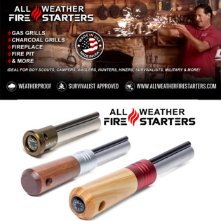 All we do here at All-Weather Firestarters is manufacture Magnesium Firestarters. This allows us to focus on one thing, being the best in our market. We have done all the hard work for our customers by finding the best materials available, and we are always looking for and developing better materials. We presently hold a Patent and Patent pending on our Firestarters. We use High-Grade Magnesium and Flints to produce our product and do not cut corners. It's all about performance, and we know our Firestarters will perform above and beyond your expectation.