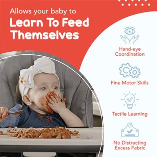 • No sleeves mean no wrestling to get the bib on the baby and no excess fabric causing a distraction or a bigger mess. If baby wears long sleeves during a messy meal, roll them up!