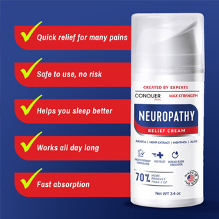 Save on pain relief cream specially formulated here in the USA by Conquer Pain Neuropathy Cream!!!
