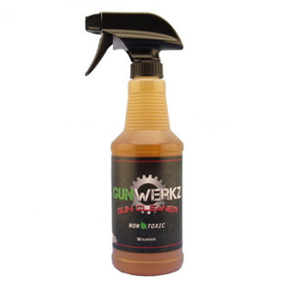 Gun-Werkz is a different type of cleaner that was discovered quite by accident. It is an amazing solvent, yet it has a low odor and is easy on the skin. Its low evaporation rate allows you to run a patch down the barrel or spray the part that needs extra cleaning and you can walk away for days while our cleaner is still working on the crud. Most cleaners evaporate within minutes requiring you to apply more and more. The small molecular structure allows it to penetrate the carbon and break it down more efficiently than the other brands.