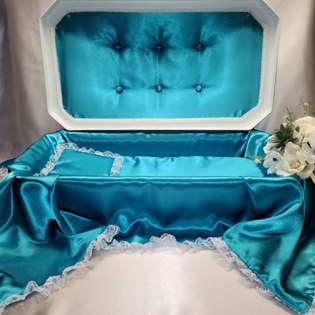 We manufacture our polystyrene, non-biodegradable pet caskets in Burleson, Texas. Everything from the plastic sheet to the lace trimming of the poly satin bedding is sourced from US companies. We form, sew, and ship every casket from our family-owned and operated plastics company.