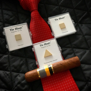 Flimsy tie clips and sharp tie pins have plagued neckties since their inception. A flimsy tie clip will look crooked on a tie and provide an incomplete style look. Tie pins puncture a permanent hole in the tie, damaging it and forcing you to wear a pin with that select tie. Tie Mags takes a different approach. Using the strongest magnets found on earth, Tie Mags hold your necktie firmly in place with style. One back-piece magnet is hidden behind your shirt slit, and one Tie Mag is on the front of your tie. The two magnets create a strong bond that holds your tie in place for a completely dapper look.