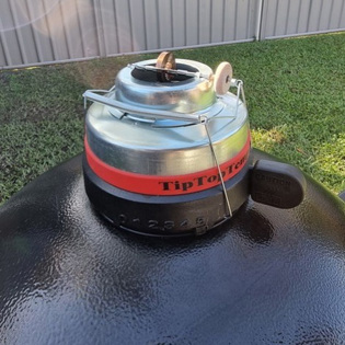 Manually adjusting grill of vents to maintain temperature is a chore. The TipTopTemp™ damper automatically moves to limit airflow to the coals and thus regulating the grill temperature. While never leave a lit grill unattended, the TipTopTemp™ frees you for other activities without the worry of ruining dinner.