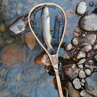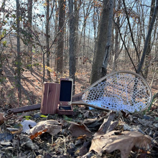 Our handcrafted fishing nets combine beautiful hardwoods with custom designs, hand drawn, engraved, and painted with epoxy. I work directly with my customers to provide a fun experience in designing and creating their fishing nets. I also offer in-stock options for those looking for a carefully handcrafted net made in the USA. For those, you can check out our Classic line of nets, which come with a Walnut handle, Hickory hoop highlighted with a Walnut pinstripe, and Cherry accents marrying the handle and the hoop.